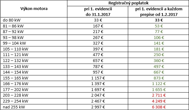Registračný poplatok bude nový majiteľ vozidla platiť pri jeho prvom prihlásení do evidencie v SR (nové a dovozené vozidlá), ale aj pri každom ďalšom prepise (jazdené vozidlá). Uvedené poplatky sa týkajú vozidiel kategórie L, M1 a N1, okrem kategórie N1 s najviac tromi miestami na sedenie.
